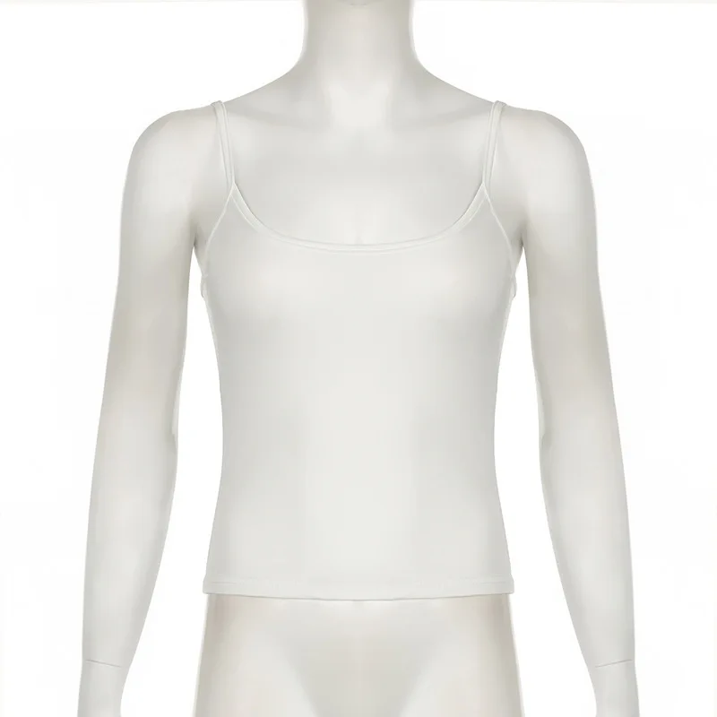 Sexy Spaghetti Strap Tank Tops Fashion Women White Solid Basic Sleeveless Y2K All-Match Crop Top Casual Streetwear Harajuku Tees