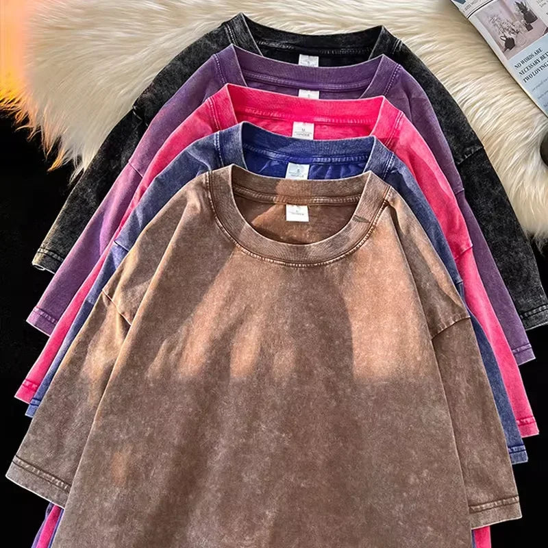 Women Washed Vintage T-Shirts Street Hip Hop Retro Punk T Shirt Women Plus Size Casual Cotton Short Sleeve Acid Wash TShirts Top