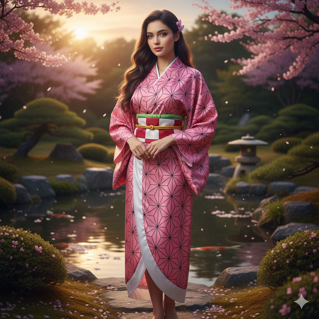 Anime Demon Slayer Kimetsu No Yaiba Kamado Nezuko Cosplay Costume Women Kimono Wig Halloween Carnival Outfit Suit