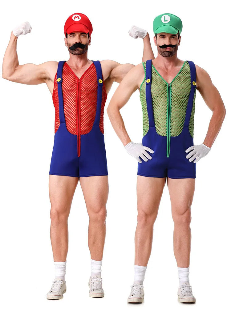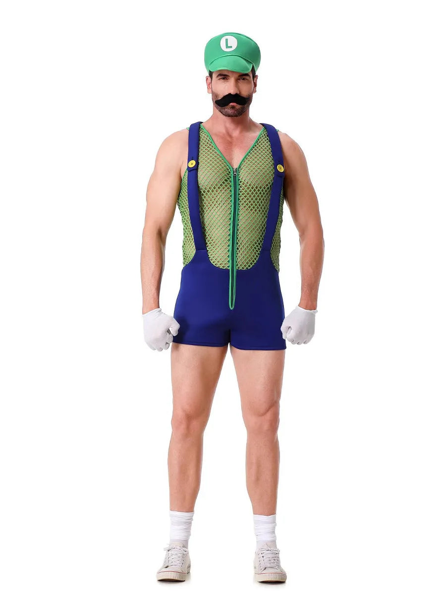 Halloween Mens Anime Super Luigi Brothers Cosplay Costume Carnival Party Disguise Plumber Funny Jumpsuit