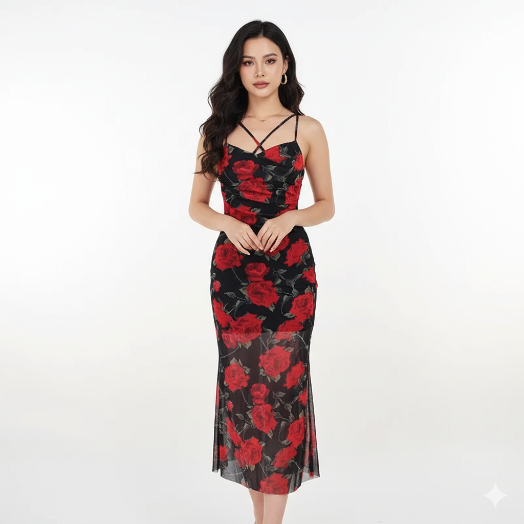 Flowers Print Spaghetti Strap Dresses Women Temperament Package Hip Bodycon Long Dress Fashion Sexy Backless Lady Slim Vestidos
