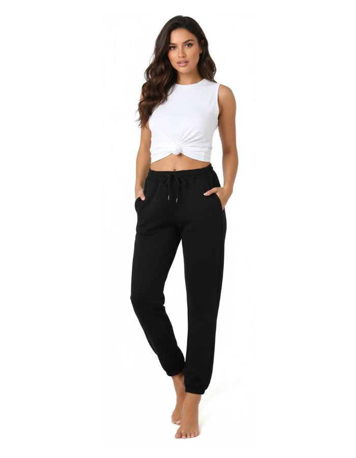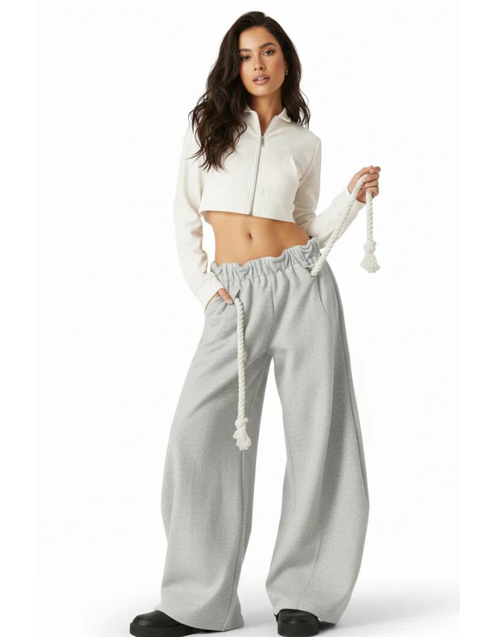 Wide Leg Sweatpants Women Baggy Drawstring High Waisted Cotton Jogger Pants Loose Fit Gym Golf Pants with Pockets