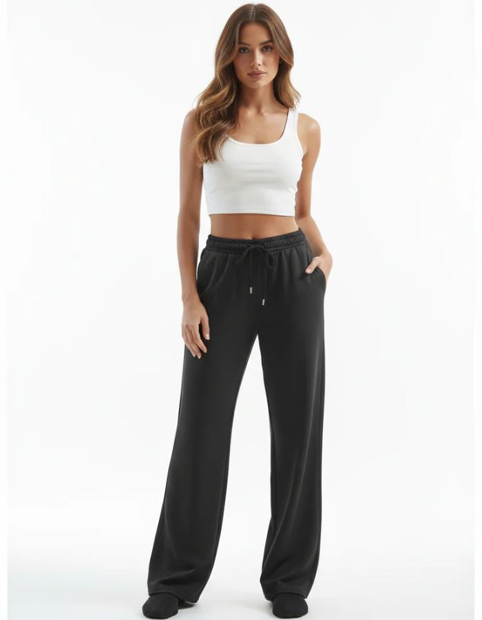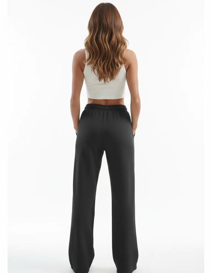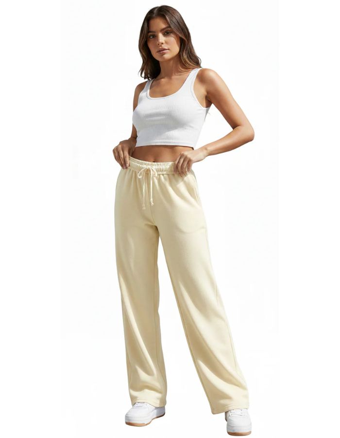 Womens Wide Leg Pants High Elastic Waisted Flare Yoga Pants with Pockets Lounge Pants Baggy Straight Leg Sweatpants