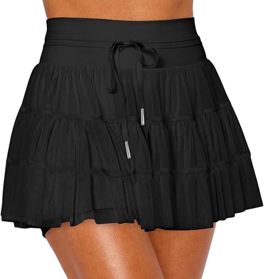Women's Low Waist Micro Mini Skorts Skirt with Built-in Shorts Sexy Stretch Black Skirts Basic Outfits Elastic Waist