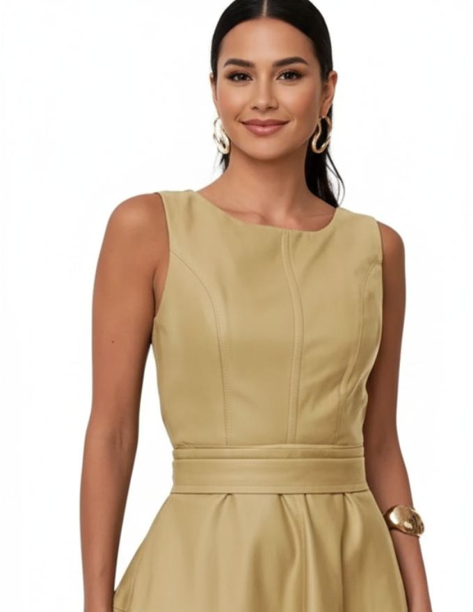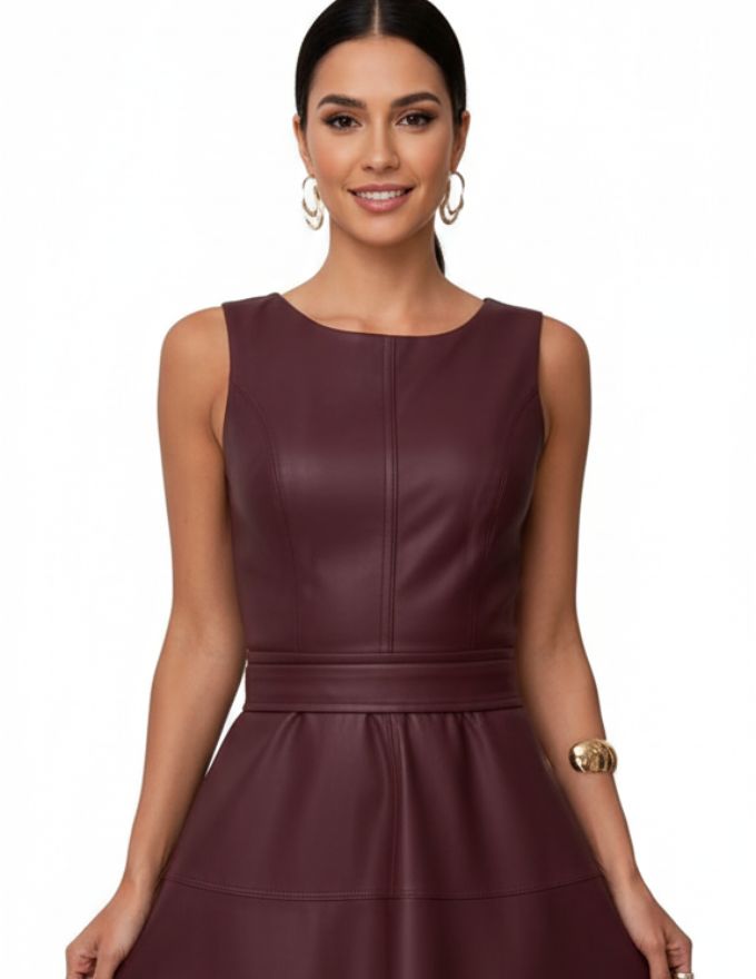 CHARTOU Women PU Faux Leather Sleeveless Elegant Flowy Long Dress Party Night Out Dress with Belt