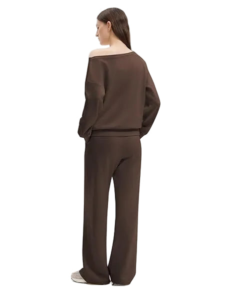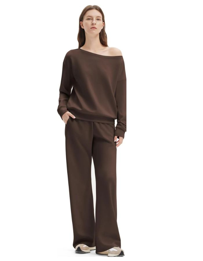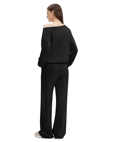 Women 2 Piece Lounge Matching Set Off Shoulder Sweatshirt Wide Leg Sweatpant