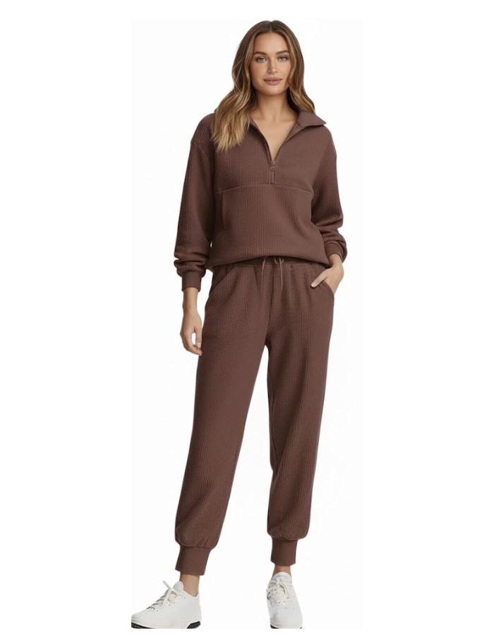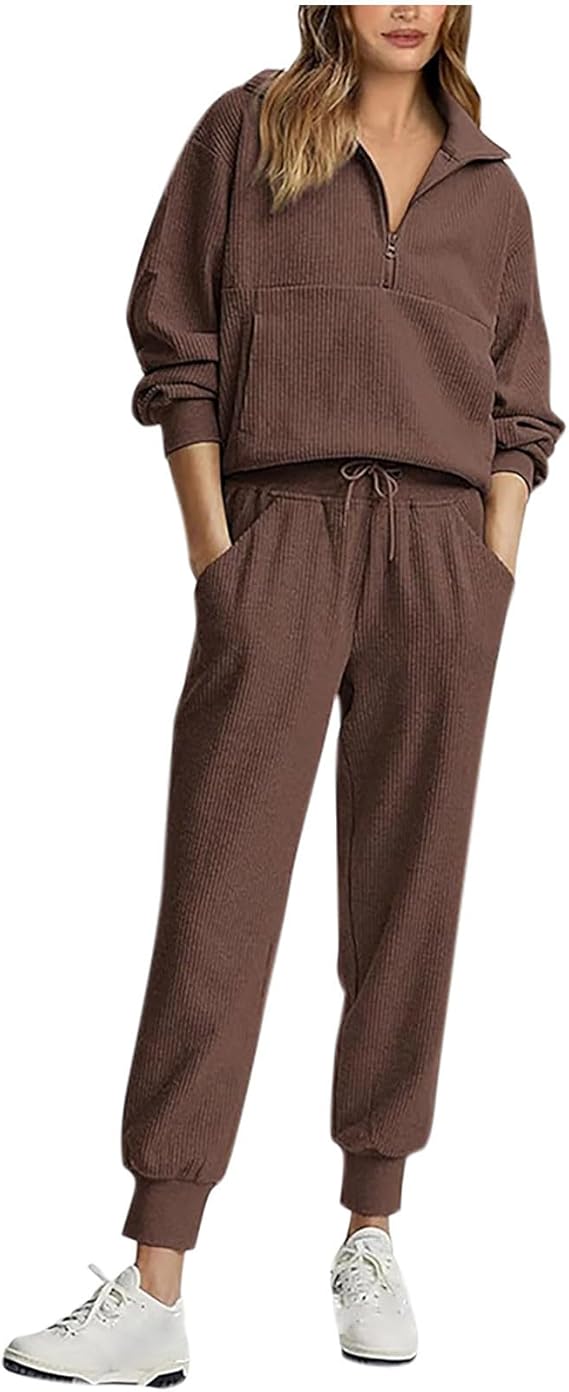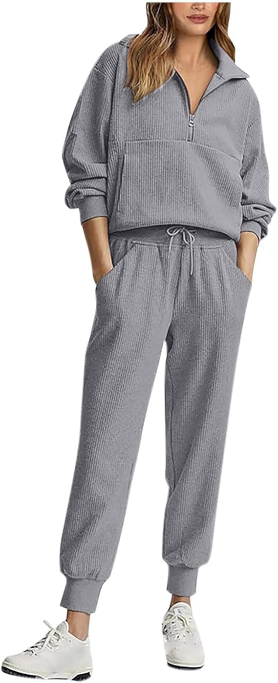 Women's 2-Piece Sweatpants Set Long Sleeve Half Zip Pullover Sweatshirt & Joggers Pants Comfy Outfits Soft Tracksuit for Yoga Gym Activewear with Front Pocket & Elastic Waistband - Sweat suit Loose