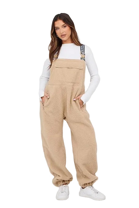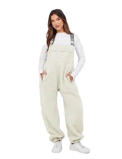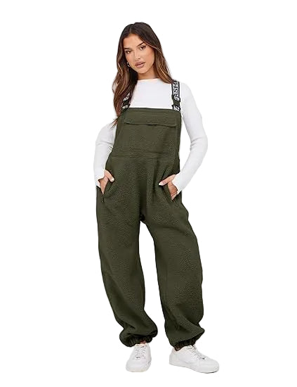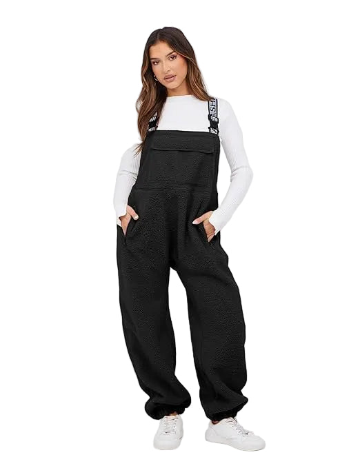 Women's Sherpa Fleece Overalls 2025 Warm Winter Casual Loose Jumpsuits Sherpa Bib Overalls Fuzzy Ski Pants with Pockets Basic Womenswear