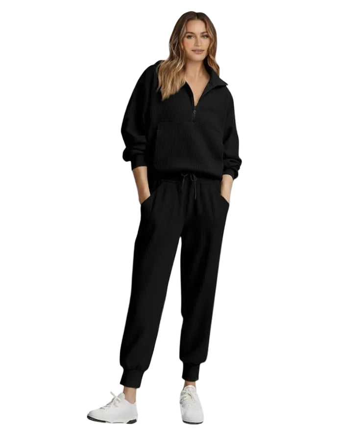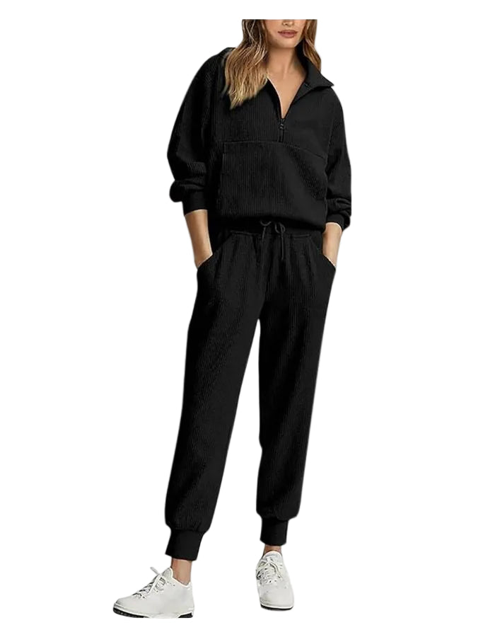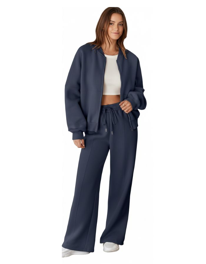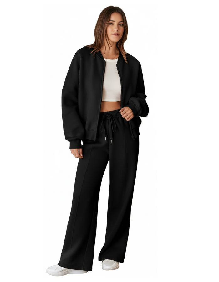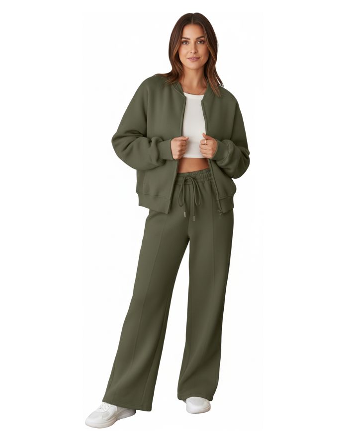 Women's Casual Tracksuit Set Zip Front Jacket and Elastic Waist Pants For Airport Wear Athleisure Style