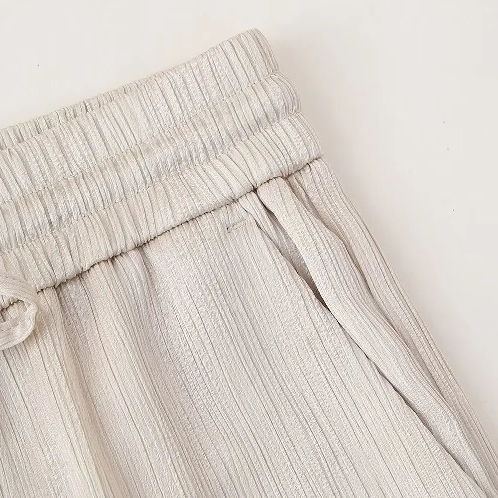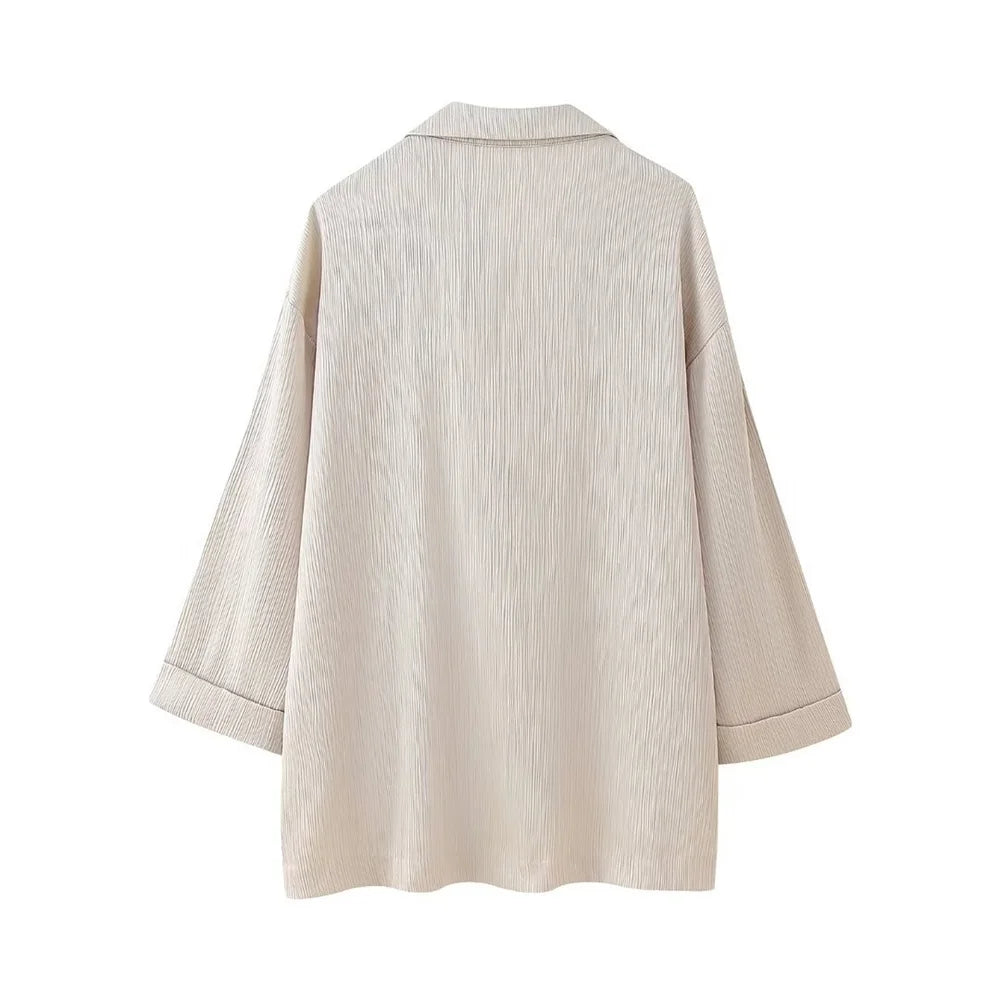 European and American Style 2024 Spring and Summer New Women's Clothing Wrinkle Effect Double Breasted Suit Jacket Pants Set